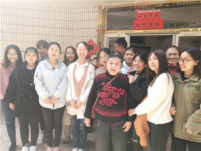 活动中,同学们与老人们相处得十分融洽,公寓里洋溢着轻松欢乐的氛围。通过与老人的交流,同学们得知,这里的老人大多是由于子女工作繁忙,无暇照顾而被送来的,有的老人甚至无儿无女。看到她们孤独的眼神,被岁月碾过的脸庞以及弯驼的脊背,同学们的心不禁揪了起来,同时也希望能多给老人们一些关怀。同学们纷纷地向老人们展示了精心准备的才艺,凌佳妍同学深情朗诵了汪国真的诗《我喜欢出发》,以此作为这次敬老活动的寄语;李寒蕊同学献唱了邓丽君的经典歌曲《我只在乎你》,仿佛展现了老人们的青春回忆;陈娟娟同学的《阳光总在风雨后》也引发了老人们的共鸣;陈健同学的《走进新时代》表达了对当今新时代的崇高赞美;最后新疆同学玉丽吐孜阿依等人用一段精彩的新疆舞结束了此次敬老活动。此外同学们还和老人们一起演唱了《学习雷锋好榜样》、《北京的金山上》、《没有共产党就没有新中国》等经典曲目,老人们对同学们的表演赞不绝口。