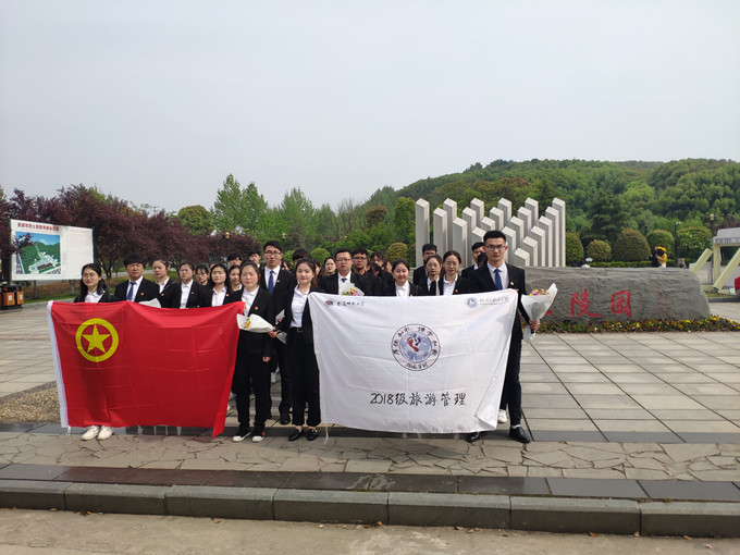 本网讯(565net必赢客户端 陈祥云、汪海洋)为深入学习贯彻习近平新时代中国特色社会主义思想和党的十九大精神,纪念五四运动100周年,激励和引领广大团员青年大力弘扬五四精神,2019年4月13日上午,在院团委的大力支持下,2018级旅游管理团支部开展“青春心向党·建功新时代”纪念“五四”运动100周年主题团日活动,赴芜湖市烈士陵园缅怀英烈。2018级旅游管理专业全体团员及565net必赢客户端团委副书记陈祥云参与本次活动。