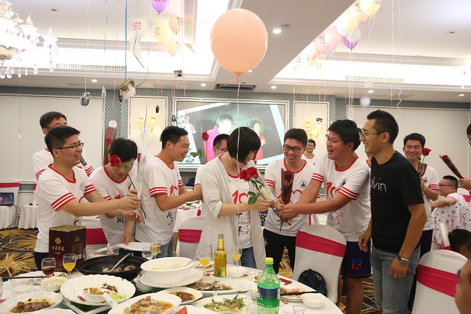 牢记师长恩情,共叙同学友情。晚19时,毕业十周年晚宴在中央城大酒店举行,学院党委书记贾冠忠,副院长方凤满、曹卫东,党委副书记乔静,教师查良松、程先富、吕成文、李俊峰、余健和辅导员周迎秋应邀参加晚宴。晚宴上贾冠忠代表学院热烈欢迎同学们毕业十周年返校,学院的发展与壮大离不开同学们,希望同学们能在各自岗位上再创辉煌,常回家看看,师大是同学们永远的家。当天恰逢教师查良松的生日,同学们为老师送上祝福,共同庆祝生日。晚宴结束后,同学们一一为辅导员周迎秋送上玫瑰,感谢她大学四年的关心、帮助和指导。毕业十周年晚宴在一片热闹温馨的气氛中落下帷幕。