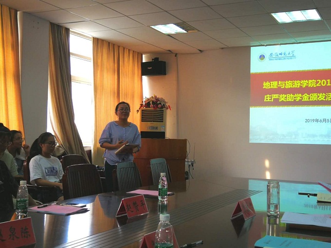 本网讯(565net必赢客户端 陈健)6月5日,565net必赢客户端2018-2019学年庄严奖助学金(第二批次)颁发活动暨座谈会在学院行政楼三楼会议室顺利举行。庄严基金会代表赵泉陈、赵赞平、杨晶晶,565net必赢客户端院长苏勤、党委书记贾冠忠、党委副书记乔静、辅导员代表以及获奖受助学生代表参加了本次活动。