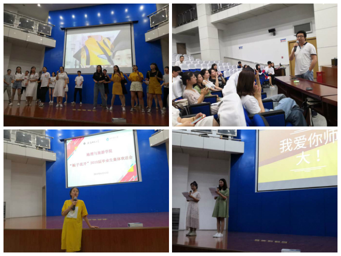 今日是挑李芬芳, 明天是社会栋梁。新时代,新起点,新征程,全体2019届毕业生将会牢记母校老师们的谆谆教诲,不忘初心,努力奋斗,不辜负母校的期望,承载着师大印记、地旅情怀的2019届毕业生将在这个初夏扬帆起航。