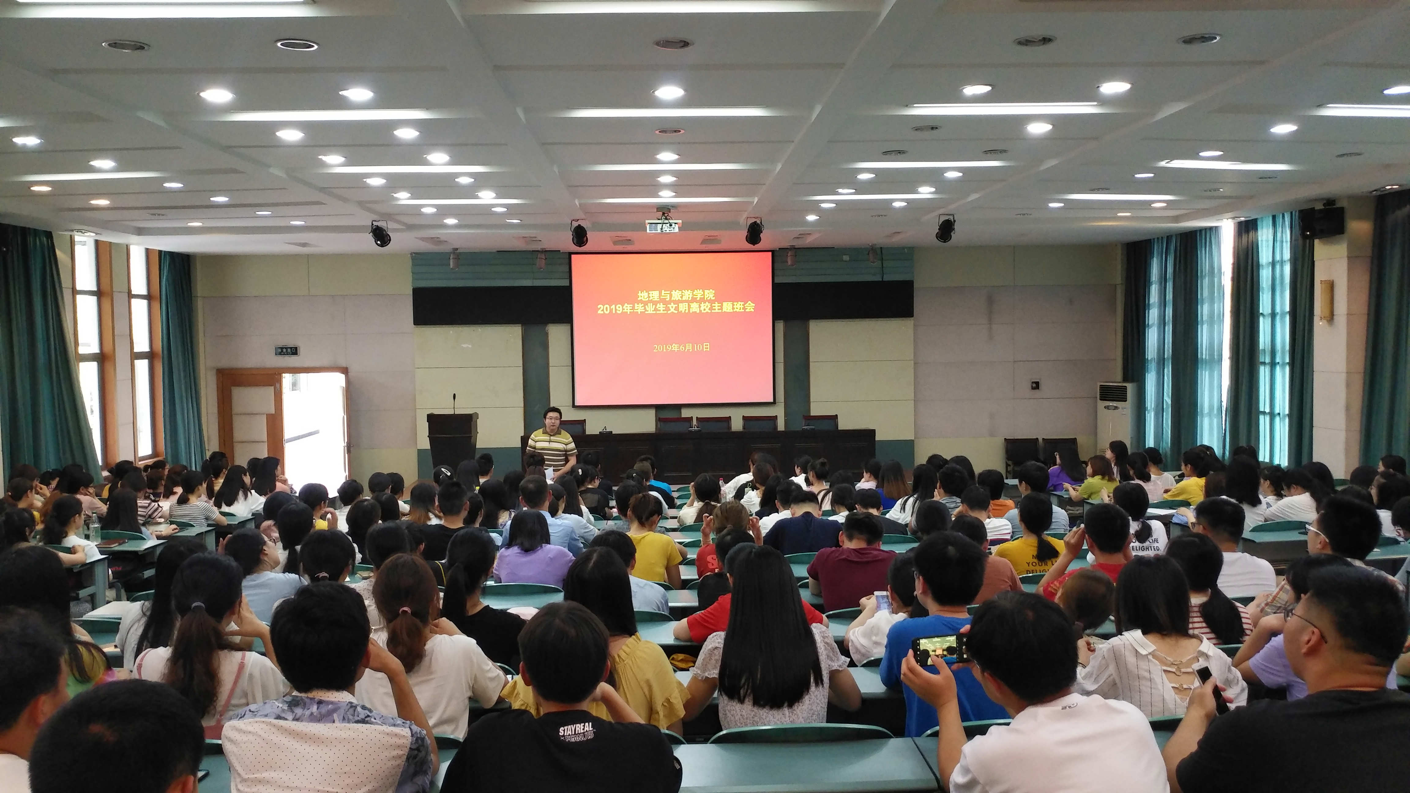 6月11日上午,565net必赢客户端2019届全体毕业生在学院实验楼101教室,召开毕业生文明离校主题班会。班会由毕业生辅导员钱程主持,毕业班辅导员王美及全体学生参加。