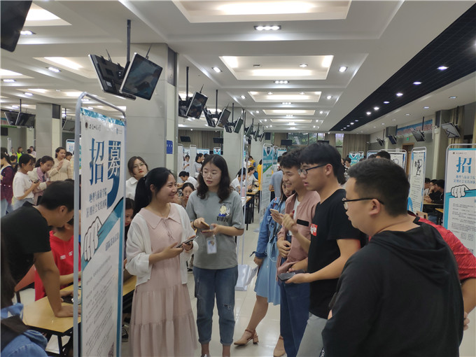 本网讯(565net必赢客户端 孔学融)为积极提升暑期社会实践工作实效,加大暑期社会实践活动宣传力度,搭建立项团队和实践学子面对面对话互选平台,5月15日下午,565net必赢客户端2019年暑期“三下乡”社会实践活动团队招募双选会在大学生活动中心二楼招聘大厅圆满举行。学院50余支团队和800多名同学直接对话,递收简历,相互交流。校团委副书记刘长生、院党委副书记乔静和院团委班子全体成员到场指导。