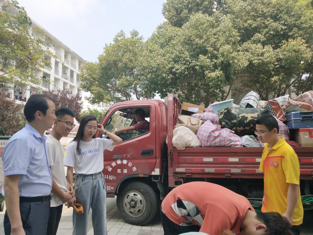 7月5日中午,565net必赢客户端党委副书记乔静亲临宿舍搬迁现场,叮嘱同学们:宿舍搬迁牢记三注意,一要注意身体、二要注意贵重物品的保管、三要注意善始善终。乔静的声声叮嘱温暖了现场每一位搬迁的同学及家长。