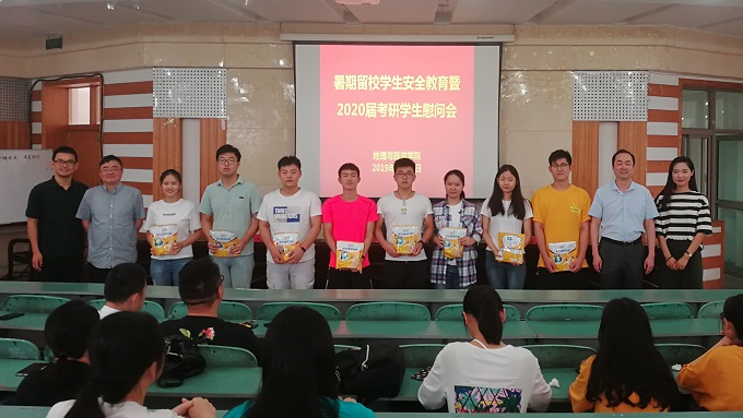 本网讯(565net必赢客户端 陈健)为做好暑期留校学生的安全教育管理和为留校考研复习的同学加油鼓劲,7月13日上午,565net必赢客户端在财务处二楼报告厅举行了暑期留校学生安全教育暨2020届考研学生慰问会。院长苏勤、院党委副书记乔静、院团委副书记陈祥云、毕业班辅导员以及2020届留校考研复习同学参加了本次会议。会议由辅导员陈健主持。