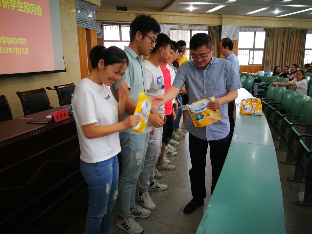 接着,苏勤代表学院领导老师对考研学生表示关心与慰问,鼓励同学们多多与专业教师、导师联系,提出“目标比距离重要、自信比黄金重要、态度比能力重要、战术比战略重要”四点希望, 鼓励大家要志存高远、坚持不懈,一定会取得成功!会后,学院领导老师为同学们送上慰问品以表心意,希望同学们再接再厉,通过自己的努力获得理想的成绩!
