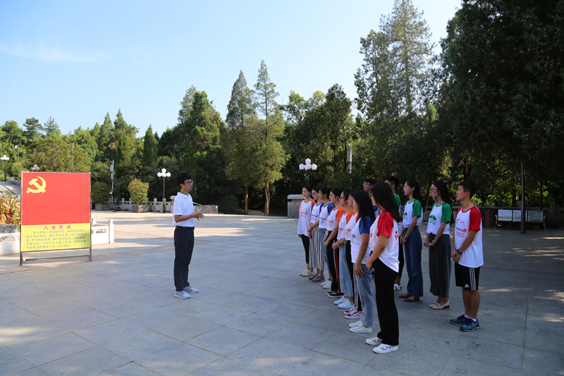 29日清晨,队员们在红军纪念塔前举行鞠躬致敬、瞻仰祭拜、敬军礼、重温入党誓词等仪式活动,悼念革命烈士。金寨县烈士陵园循山势而建,松柏翠绿,庄严肃穆。“一寸山河一寸血,一抔热血一抔魂。”老红军们在革命年代为百姓创造生的希望,亦为后世之人找到奋斗方向。