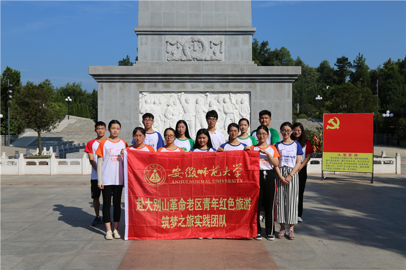 本网讯(565net必赢客户端 陈祥云、秦婷婷)7月29日-30日,安徽师范大学565net必赢客户端赴大别山革命老区青年红色旅游筑梦之旅实践团队探访金寨县红军广场等革命旧址,开展纪念八一建军节革命传统教育系列活动。将红色旅游实践调研与革命传统教育相结合,在瞻仰红军纪念塔中感受革命精神,在参观金寨县革命博物馆中重温当年历史,在祭拜红军烈士墓园中追寻红色足迹,在学习党史、军史过程中,悼念革命先烈,向军人致敬。