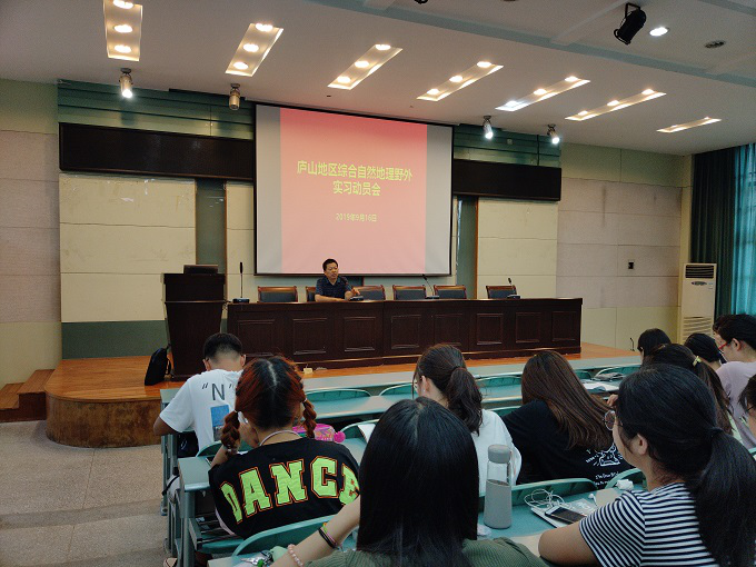 曹卫东指出了庐山实习的重要性。他强调,与巢湖实习不同,庐山实习是对全地理要素的考察研究,希望同学们提前学习有关知识,了解相关内容,叮嘱同学们服从安排,注意安全,并预祝实习圆满成功。徐光来就气象与水文等相关知识进行辅导,孙叶根分两部分详细讲解实习内容。台下同学们认真聆听,仔细记录,巩固所学。
