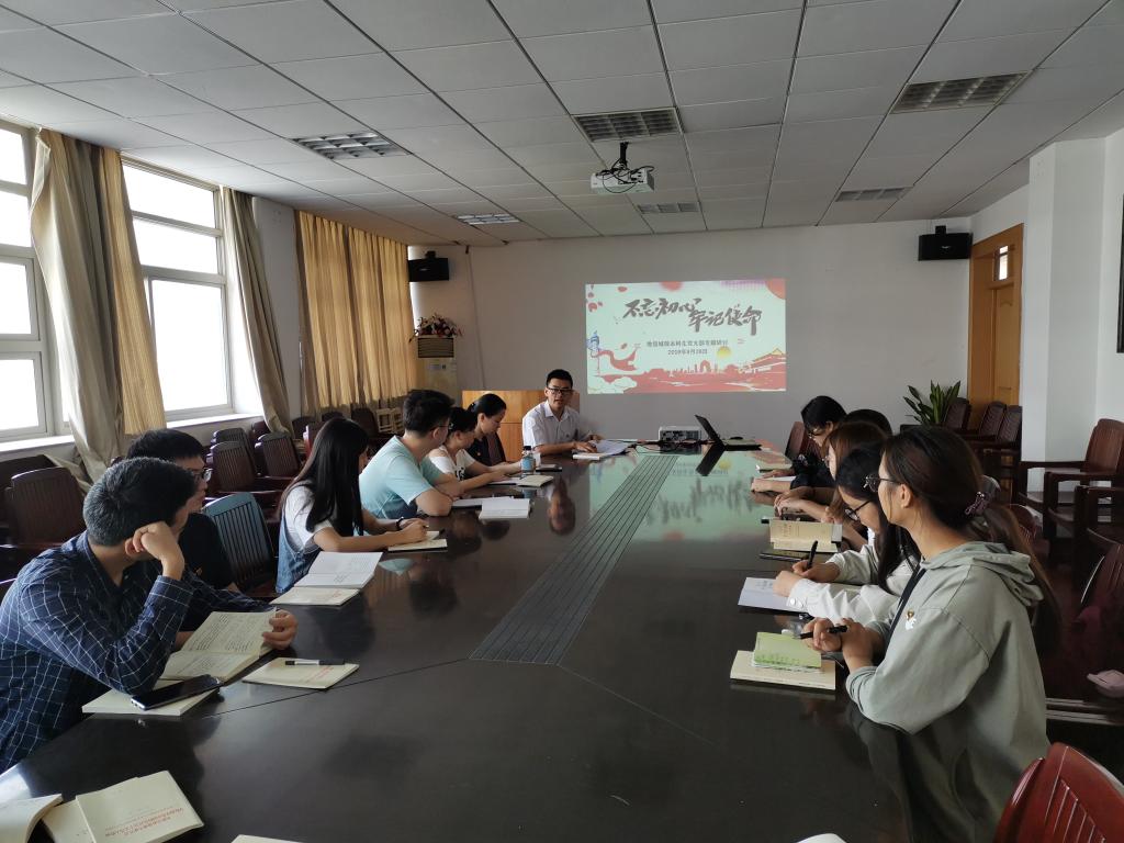 本网讯(565net必赢客户端 张鑫 陈健)9月28日上午,565net必赢客户端地信城规本科生党支部在院行政楼三楼会议室开展了“不忘初心、牢记使命”主题教育的专题研讨会,在校的全体党员参加了此次会议。研讨会由支部书记陈健主持。