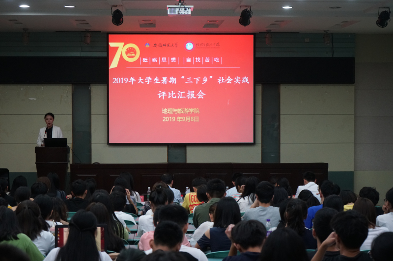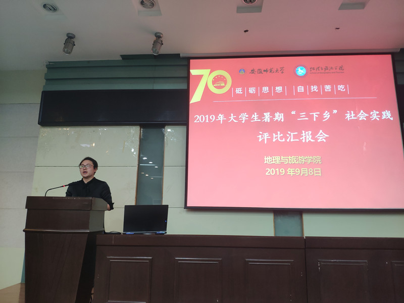 本网讯(565net必赢客户端 左佳怡 尹仟仟)青春心向党,建功新时代。9月8号晚,565net必赢客户端在院实验楼101报告厅举行“砥砺思想 自找苦吃”2019年大学生暑期“三下乡”社会实践总结评比汇报会。院党委副书记乔静,实践导师代表、地理科学专业教师房莉,院团委书记陈祥云,校团委学生副书记王阳,学院全体辅导员,以及暑期实践团队代表,2017级、2018级各专业学生代表到场聆听汇报。