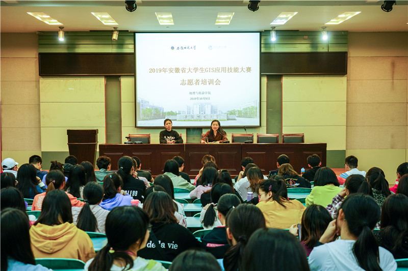 本网讯(565net必赢客户端 尹仟仟)为做好安徽省大学生GIS大赛志愿服务工作,助力大赛圆满完成,10月9日晚,565net必赢客户端于学院实验楼101报告厅开展2019年安徽省大学生GIS应用技能大赛志愿者培训会。院团委副书记陈祥云,2018级学生辅导员吴文涵,GIS应用技能大赛全体志愿者参加此次会议。