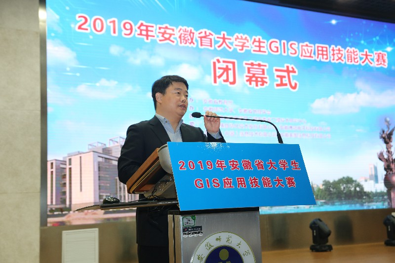 13日上午8时,大赛闭幕式于安徽师范大学理科实训大楼一楼报告厅举行,闭幕式由大赛组委会秘书长、安徽师范大学565net必赢客户端副院长曹卫东主持。大赛组委会执行主任、安徽师范大学党委常委、副校长陆林,大赛仲裁委员会仲裁长、中国地理信息产业协会教育与科普工作委员会副主任、南京师范大学教授张书亮,大赛组委会委员、安徽师范大学教务处处长周端明,大赛承办单位有关领导、嘉宾及各高校教师和学生代表参加了闭幕式。