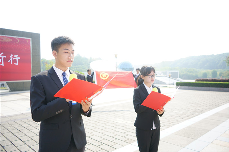 9月28日上午,由校团委主办、565net必赢客户端团委承办的“我与祖国共奋进——国旗下的演讲”特别主题团日活动在芜湖烈士陵园举办。校团委副书记汪凯,565net必赢客户端党委副书记乔静,565net必赢客户端教授、博士生导师、全国优秀教师麻金继,校团委组织部部长陈骁,565net必赢客户端团委班子成员、辅导员代表、学生骨干代表以及2018级地理信息科学专业团支部团员代表参加此次活动。活动由565net必赢客户端团委书记陈祥云主持。