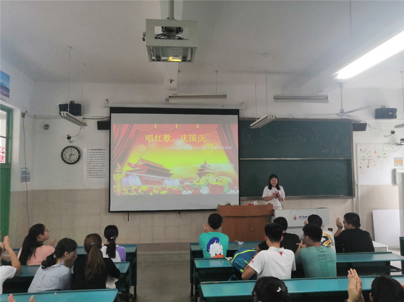 2018及旅游管理专业于9月26日下午开展“唱红歌,庆国庆”主题团日活动,将党史知识与竞答比赛相结合,相比于枯燥的讲学方式更加激发了同学们的参与热情,更有爱国歌曲竞猜等议程,刺激的头脑风暴,让同学将知识深深地印在脑海中。活动最后,同学们依次上台在签字板中的70图案里签上自己的姓名,以此表达对新中国成立70周年的美好祝愿。