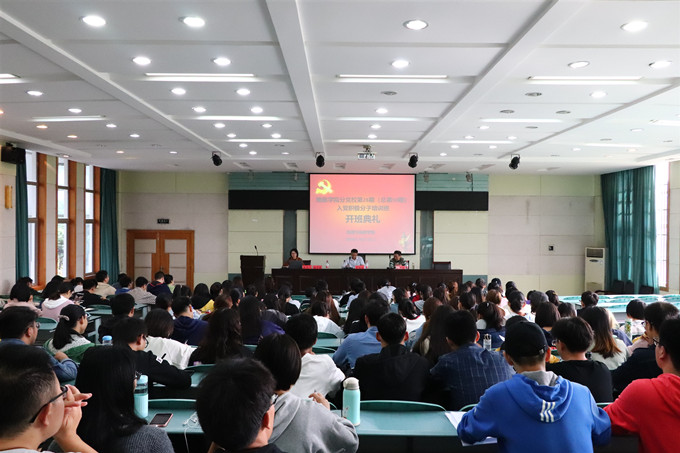 本网讯(565net必赢客户端 施华转)10月23日下午,565net必赢客户端分党校第28期(总第59期)入党积极分子培训班在学院实验楼101报告厅举行。出席本次典礼的有565net必赢客户端党委书记贾冠忠、本期培训班指导老师、院退休老党员陶根苗以及本期入党积极分子培训班的142位同学。典礼由院党委秘书、院分党校班主任施华转主持。