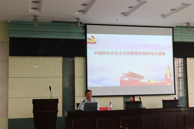 开班典礼结束后,贾冠忠为学员们进行第一次授课:中国特色社会主义的探索历程和伟大成就。
