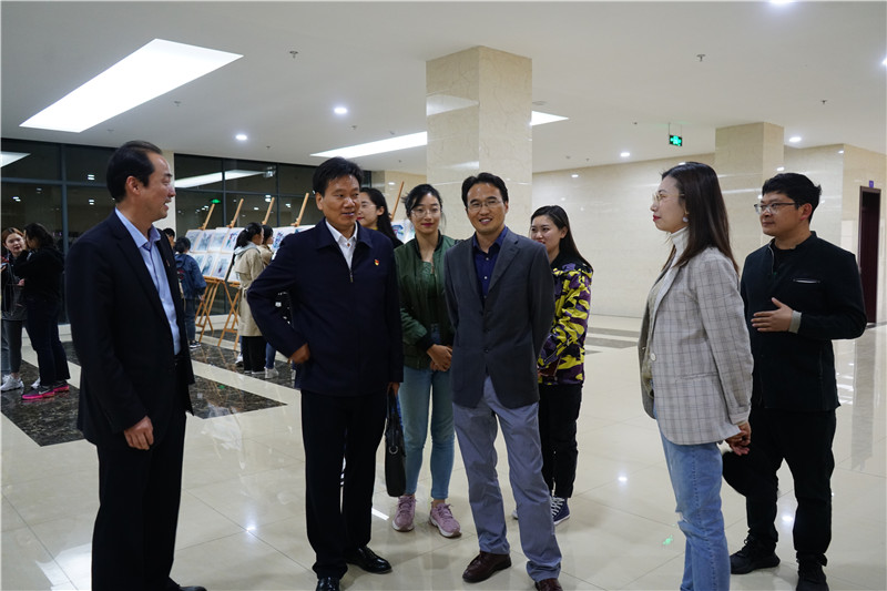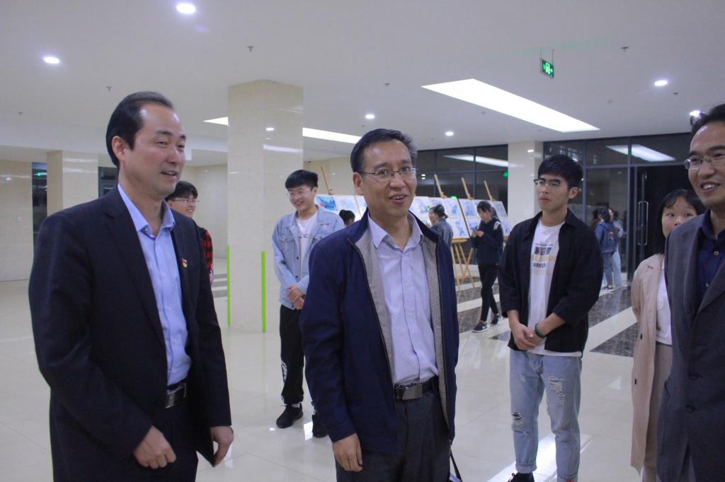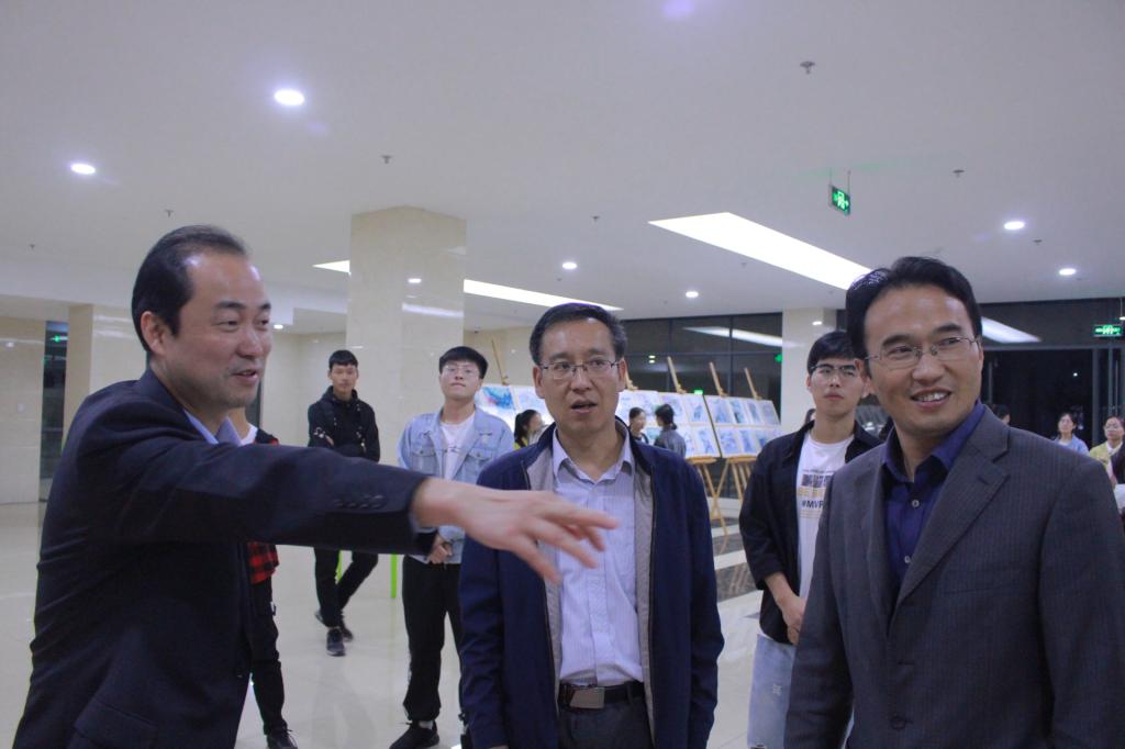 本网讯(565net必赢客户端 王阳 潘爽 李丹)为展现565net必赢客户端教学风采,分享城规专业学习成果,2019年10月31日晚,2018级城乡规划专业于理科大楼一楼大厅举办565net必赢客户端“不忘初心 、牢记使命”主题教育活动暨城规专业课程思政“墨彩宏村”写生作品展写生作品展。校党委常委、副校长毕明福,省委主题教育第十巡回指导组成员、六安市政府办秘书四室主任张成伟,相关单位负责同志和专家,各学院学生工作负责人在院党委副书记乔静、城乡规划专业负责人杨兴柱以及多位专业任课老师、陈祥云的陪同下参观了画展。