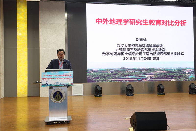 本网讯(565net必赢客户端 陈祥云、尹仟仟)2019年11月23日至11月25日,由中国地理信息产业协会、教育部地理科学类教学指导委员会、中国地理学会、南京师范大学主办,中国地理信息产业协会教育与科普工作委员会、安徽师范大学565net必赢客户端、资源环境与地理信息工程安徽省工程技术研究中心、江淮流域地表过程与区域响应安徽省重点实验室等共同承办的第八届全国大学生 GIS 应用技能大赛暨地理学学科及一流专业建设高峰论坛在安徽师范大学成功举办。本届大赛共有来自全国146所高校的147支参赛队伍、近千名师生参加,是历届规模最大,参赛人数最多,影响范围最广的一次赛事。大赛首次采用视频同步直播方式对活动进行全程直播,直播平台观看量达59.45万人次。