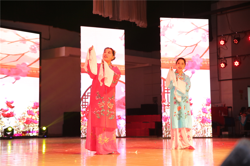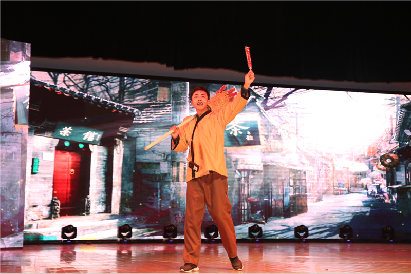 薪火相传,梦想延续,悠久历史,灿烂文化。学院领导班子和教师代表带来的歌曲《我的祖国》表达了浓烈的爱国主义情感,激情澎湃,气势磅礴。上下千年,唱念做打,生旦净丑,时代传承,在戏曲联唱评剧《花为媒》、黄梅戏《女驸马》、二人转《小拜年》、新编京剧《我和我的祖国》中,演员用字正腔圆的戏曲旋律,带领观众感受那荡气回肠的蒲腔眉韵。新疆舞《花园的欢乐》充满民族风情,共谱民族团结、欣欣向荣的华美乐章。合唱《彩虹》以合唱的形式展示新青年成长道路上不屈不挠的坚毅和对美好生活的向往。校礼仪队、辅导员代表和学生代表带来的礼仪秀表演《记忆中的七十年》展现了新中国70年的重大历史瞬间,以歌舞、诗朗诵等形式与观众共同致敬记忆中的七十年。