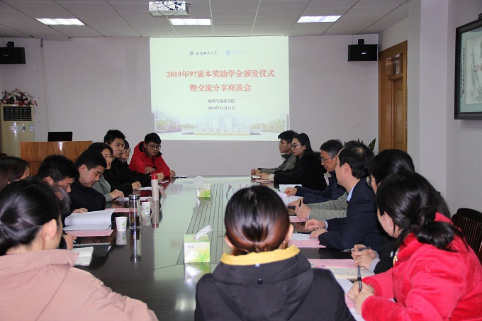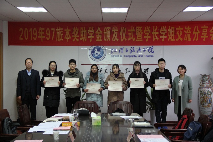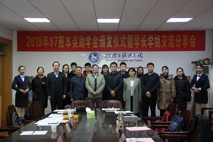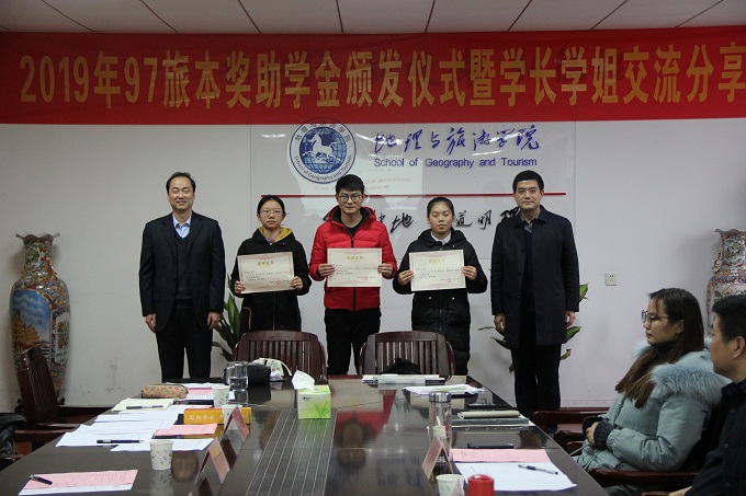 本网讯(565net必赢客户端 王美)12月21日下午,安徽师范大学97旅本奖助学金颁奖仪式暨学长学姐交流分享会于学院行政楼三楼会议室举行。我校1997级旅游管理专业本科班毕业生代表安徽工业大学党委常委、学校办公室主任窦贤琨、安徽商贸职业技术学院工商管理系副教授齐莉莉、安徽工业经济职业技术学院人事处张凤琴、安徽师范大学酒店管理系主任尹寿兵,校团委书记梁燕,565net必赢客户端党委书记贾冠忠、院长苏勤等出席活动,全体辅导员和获奖受助学生参加了颁发仪式和座谈会。活动由565net必赢客户端党委副书记乔静主持。
