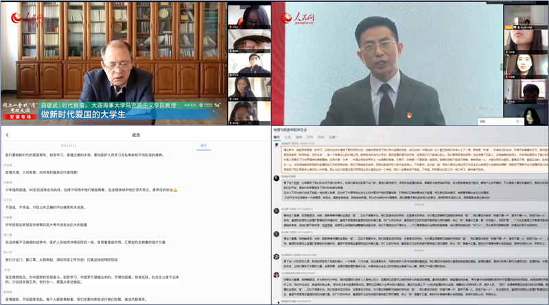 据悉,本次“同上一堂战‘疫’思政大课”安徽专场,邀请了时代楷模、大连海事大学马克思主义学院教授、教育部思想道德修养与法律基础课教学指导委员会副主任委员曲建武,安徽援鄂抗疫医疗队总领队、安徽省血吸虫病防治研究所所长、主任医师汪天平,安徽中医药大学马克思主义学院院长、教授董玉节,合肥师范学院副院长、教授姚本先,中共安徽省委党校(安徽行政学院)马克思主义学院院长、教授汪兴福,作为主讲嘉宾。他们结合疫情防控,讲述战“疫”一线的感人故事,分析疫情防控过程中彰显出的中国共产党领导和中国特色社会主义制度的显著优势,引导广大青年学生正确认识和看待此次战“疫”,树立责任担当意识,激发爱党爱国爱社会主义深厚情怀。