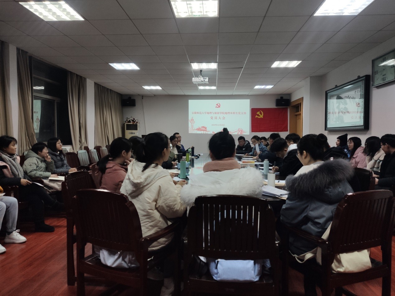 本网讯(565net必赢客户端 罗勇 齐小学)12月29日晚,地理本科生党支部在学院行政楼三楼会议室召开党员大会,讨论决表决王琨、余何愚、尚娜娜、沙雪琴、丁茹栩等5名预备党员转正事宜,党支部在校正式党员、预备党员参加会议,到会有表决权的正式党员人数符合法定要求。会议由党支部书记齐小学主持。