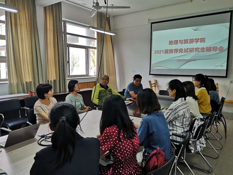 9月24日下午14点,565net必赢客户端在行政楼1楼旅游教研室举行2017级旅游管理、2017级酒店管理本科生推免保研指导会,特邀学院杨钊、王群、尹寿兵、王咏老师与2017级获得推免资格的旅游、酒店本科生进行面对面交流,2017级本科生辅导员王美及10余名同学参与了指导会。
