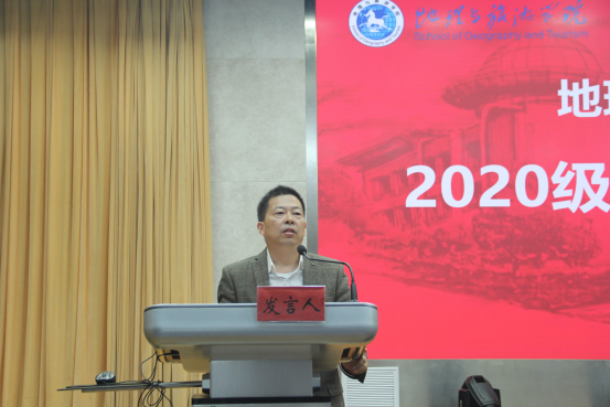 方凤满从地理学的好处、概念、学习方法以及师大地理学的地位四个方面进行阐述。她指出,地理科学的学习是一个浩然正气的养成与完善人格的塑造过程,新生要继承汲取地科所蕴含的人文精神,将自己打造成有“山的稳重,水的灵动”的地理科学专业人才。