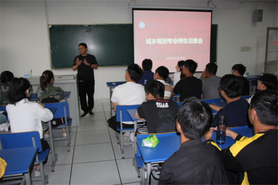城乡规划专业师生见面会在院实验楼202教室召开。城乡规划专业教师李俊峰、王原、包善驹、朱玮林等出席会议,会议由城规系主任杨兴柱教授主持。