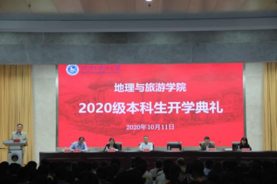 本网讯(地旅学院 洪茹芊 徐倩)金秋送爽,扬帆起航。10月11日下午,地旅学院2020级本科生开学典礼在理科实训大楼一楼报告厅举行。学院党委书记贾冠忠,院长苏勤,党委副书记乔静,副院长方凤满、曹卫东、赵冬梅等学院领导,各专业负责人、教师代表及辅导员代表出席典礼。开学典礼由乔静主持。