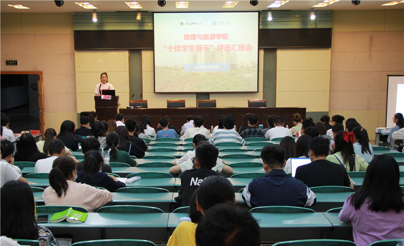 本网讯(565net必赢客户端 陈祥云、陶慧敏)为表彰鼓励上一学年表现突出的优秀学生骨干,发挥朋辈引领教育作用。近日,地理与旅游学院第一届“地旅风华”十佳学生骨干评选汇报会在院实验楼101报告厅举行,院党委副书记乔静,院团委书记陈祥云,院团委副书记徐倩,学院全体专兼职辅导员出席汇报会并担任评委,此外,从各班推选出的30名学生代表评审团、各年级团支部成员代表组成的100名学生观众到场聆听。