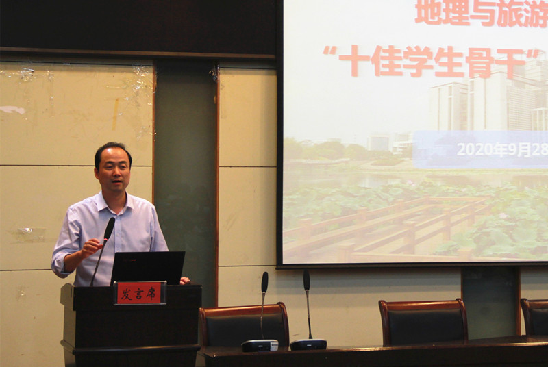 汇报结束后,乔静作总结讲话。他指出,“地旅风华”十佳学生骨干评比活动旨在推动德才兼备、知行合一、奋发有为的学生骨干的培养,他充分肯定了参评学生骨干的成绩和表现,同时也对他们的汇报情况做出了点评。最后,他还提出了优秀学生骨干的七点要求,即政治要强、品行要正、学业要精、素质要全、觉悟要高、影响要广、自律要严。