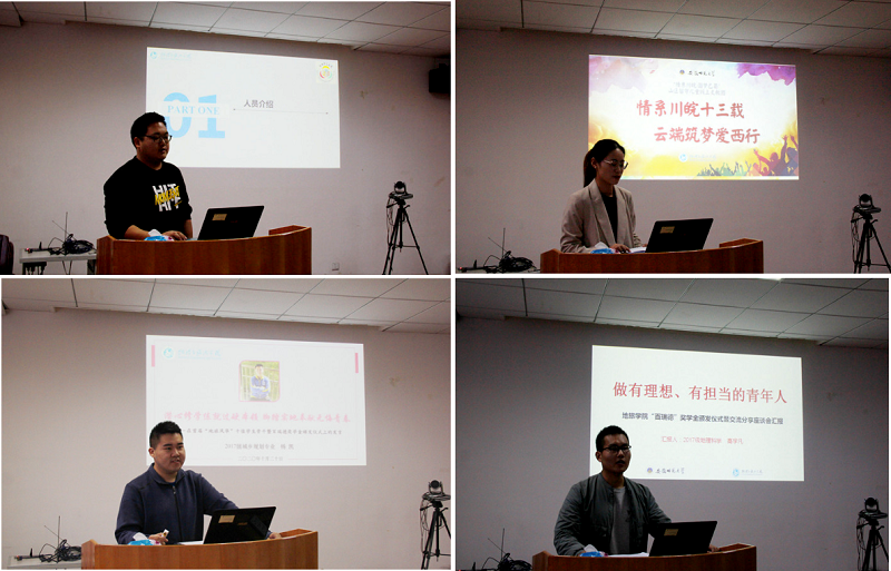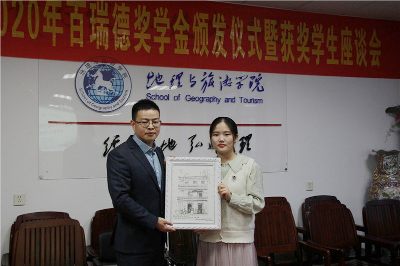 贡植斌宣读了首届百瑞德奖学金颁发决定,并由程伟为获奖个人及团队颁发荣誉证书。颁发仪式结束后,获奖学生及团队代表上台发言。2017级城乡规划专业杨凯同学提出,自己将继续“潜心修学练就过硬本领,脚踏实地奉献无悔青春”;2017级地理科学专业高宇凡同学表示,自己将坚持“夯实基础,严谨负责,完善自我,服务社会,做有理想、有担当的青年人”的理念;“情系川皖,圆梦巴蜀”山区留守儿童线上支教团承诺,支教行动将薪火相传,与山区孩子们一同成长;“基于大数据的城市内部情感旅游流时空模式”调研团队结合当下实际情况做出了精彩的汇报展示。