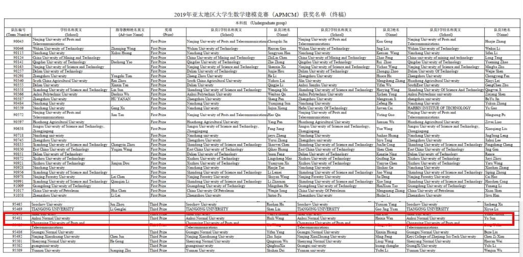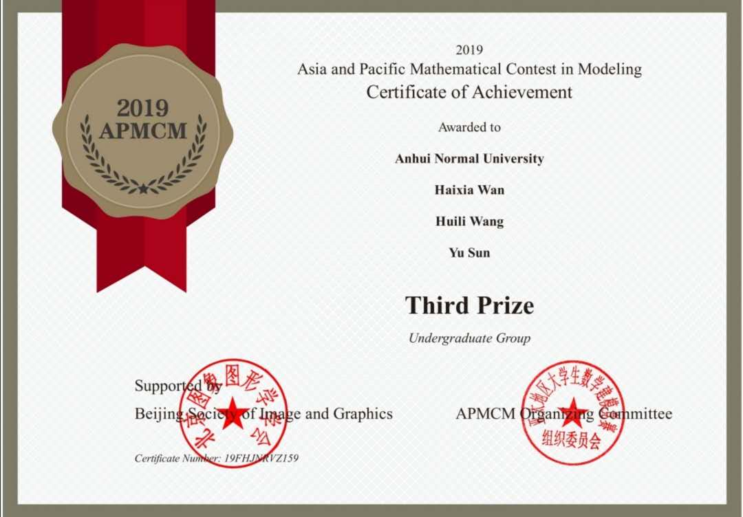 据悉,亚太地区大学生数学建模竞赛(Asia and Pacific Mathematical Contest in Modeling)是由北京图象图形学学会、亚太地区大学生数学建模竞赛组委会主办、数学家(原校宛数模)承办的亚太地区大学生学科类竞赛,竞赛的试题及材料均为英文,要求每组在四天时间内利用数模方法解决实际问题,并提交一篇英文论文。在进一步普及数学建模知识的同时,锻炼当代大学生在信息化社会发现问题、分析问题以及解决问题的逻辑思维能力,提高学生建立数学模型和运用计算机技术解决多行业综合复杂的社会及工程问题的综合能力。近年来,学院不断鼓励学生踊跃参加课外科技竞赛,不断开拓知识面、培养创新精神及合作意识,为促进大学生综合素质的发展提供了坚强保障。