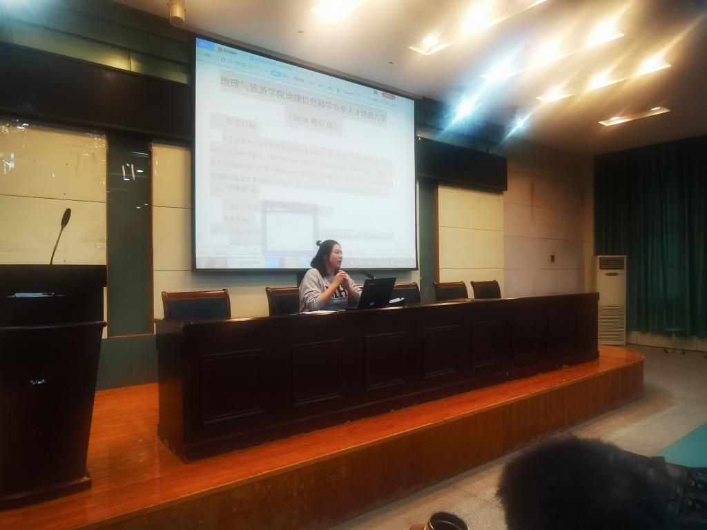 会议第二项,由齐凌艳老师向同学们介绍《565net必赢客户端地理科学专业(非师范)人才培养方案》。齐老师首先通过大家身边的GIS应用激起了同学们的兴趣,其次向大家详细介绍了培养目标、毕业要求、学制与毕业学分、核心课程以及教学时间安排等具体内容。同时,齐老师还通过列举一些学长学姐的经历来向大家介绍了选择GIS专业后需要学习的专业课程以及一些较难的例如C++等课程,希望同学们学习时不畏惧不抵触,并指出任何一门课程都会在日后对同学们带来帮助,成为辅助我们成长成才的好工具。非师范的方向后期会培养同学们的能力,同学们会具有空间数据采集、处理、分析,运用数学建模方法和计算机技术,解决实际问题的能力,具有GIS组件式系统开发的基本能力;接受良好的科学思维和科学方法的基本训练,具有资料搜集和文献检索等能力,具有创新意识及团队协作的能力和在教师指导下初步开展科学研究的能力;会熟练掌握一门外语,具备国际视野和口语与书面表达能力,具有较强的自主学习能力、环境适应能力、自我发展能力和组织管理能力。由此可见,选择非师范也是一个极好的方向。