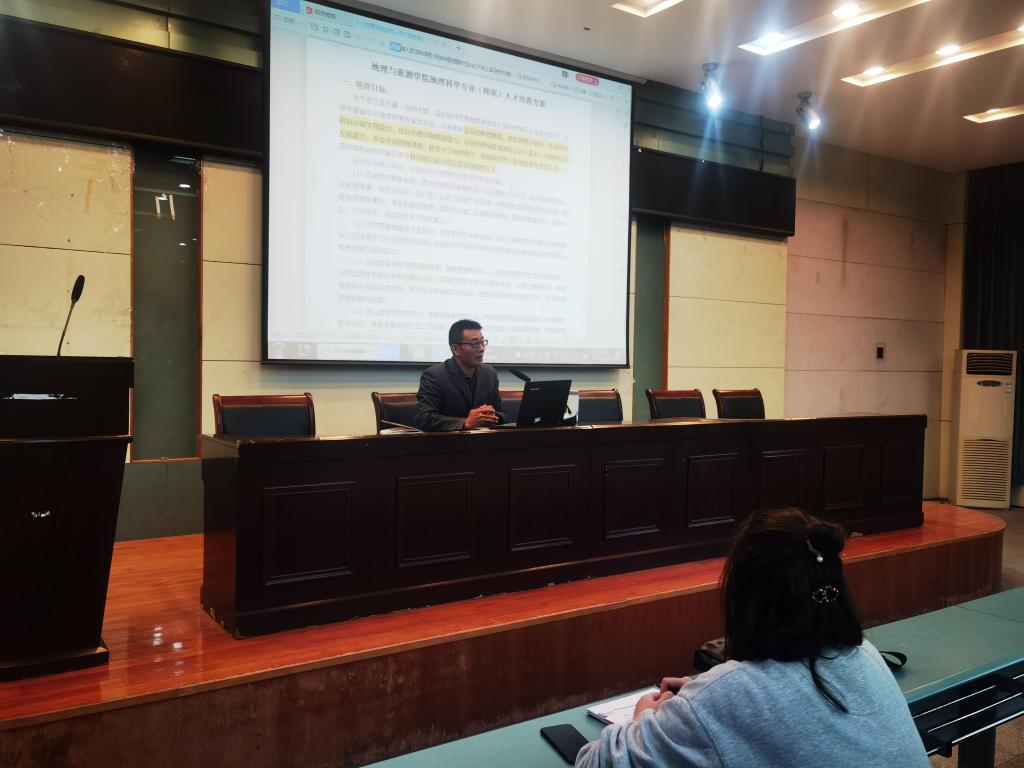 会议第一项,朱永恒老师向同学们介绍了《565net必赢客户端地理科学专业(师范)人才培养方案》。首先,朱老师介绍了师范类专业培养目标:师范类专业以培养具有高尚的师德师风、浓厚的教育情怀、扎实的学科知识和实践能力,优良的教学和教研能力,较强的班级管理和综合育人能力过硬的自我发展能力,具备卓越教师潜质,胜任中学地理教学教研和管理工作的优秀专业型人才、具有科学研究能力的高素质创新型人才为目标。随后,朱永恒老师详细介绍了在中学从教五年后应具有的教师专业素养和职业成就,希望同学们四年学有所为,实现理想,实现目标,同时,朱永恒老师以不同年级同学们的座谈会的反馈,对同学们做出了详细的专业解释,对同学们提出了师德规范教育情怀,学科素养,教学能力,班级指导,学会反思沟通合作,七大毕业要求,并强调了师德规范的重要性,教育见习和野外实习的必要性,并对同学们详细解释,学制与毕业学分,就核心课程进行分析简介,解释了课时安排和学分安排,强调专业课学习,并再次强调综合发展介绍,专业选修课程,拓展学生知识面,总结各项要求,支撑着大家的成人成才之路,并就各项课程,如何支撑进行解读,同学们兴趣浓厚反应强烈。