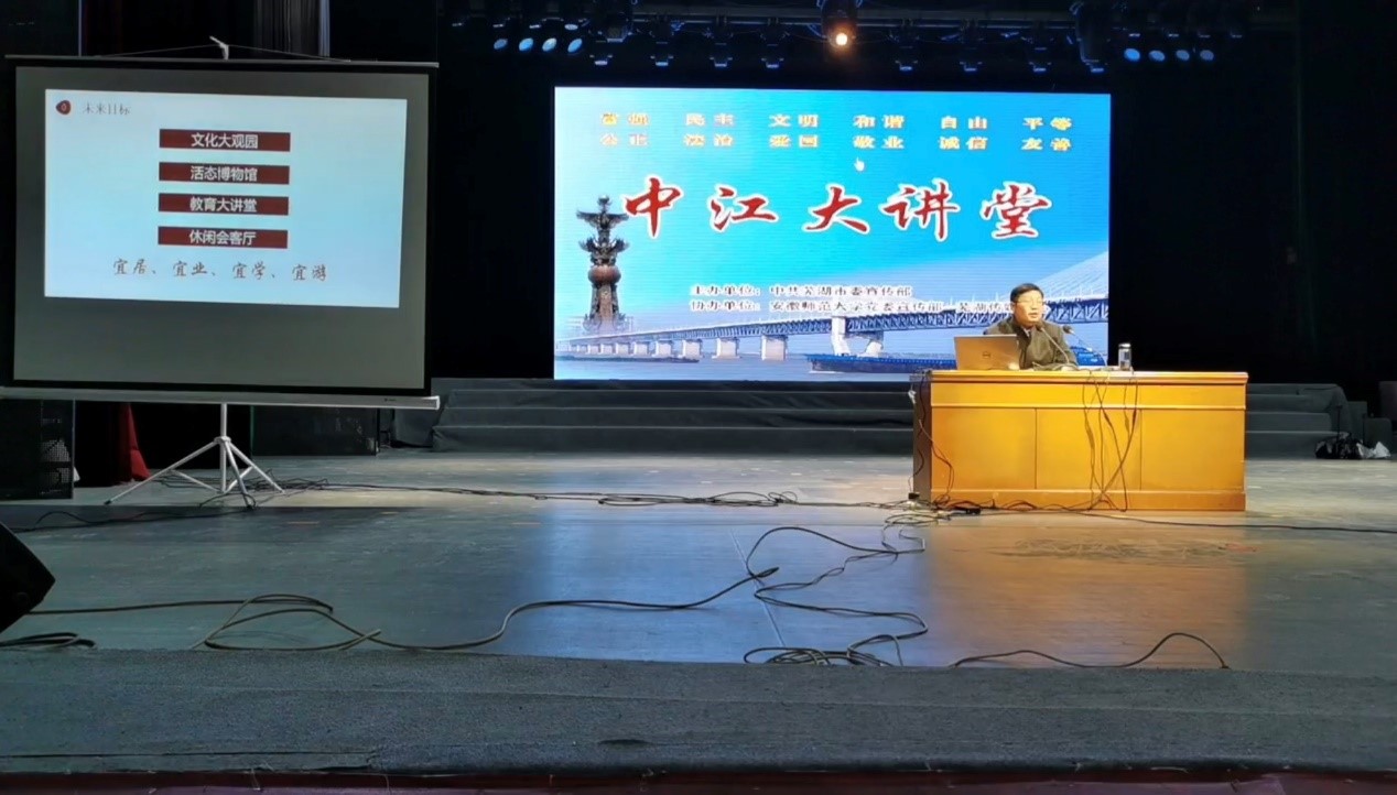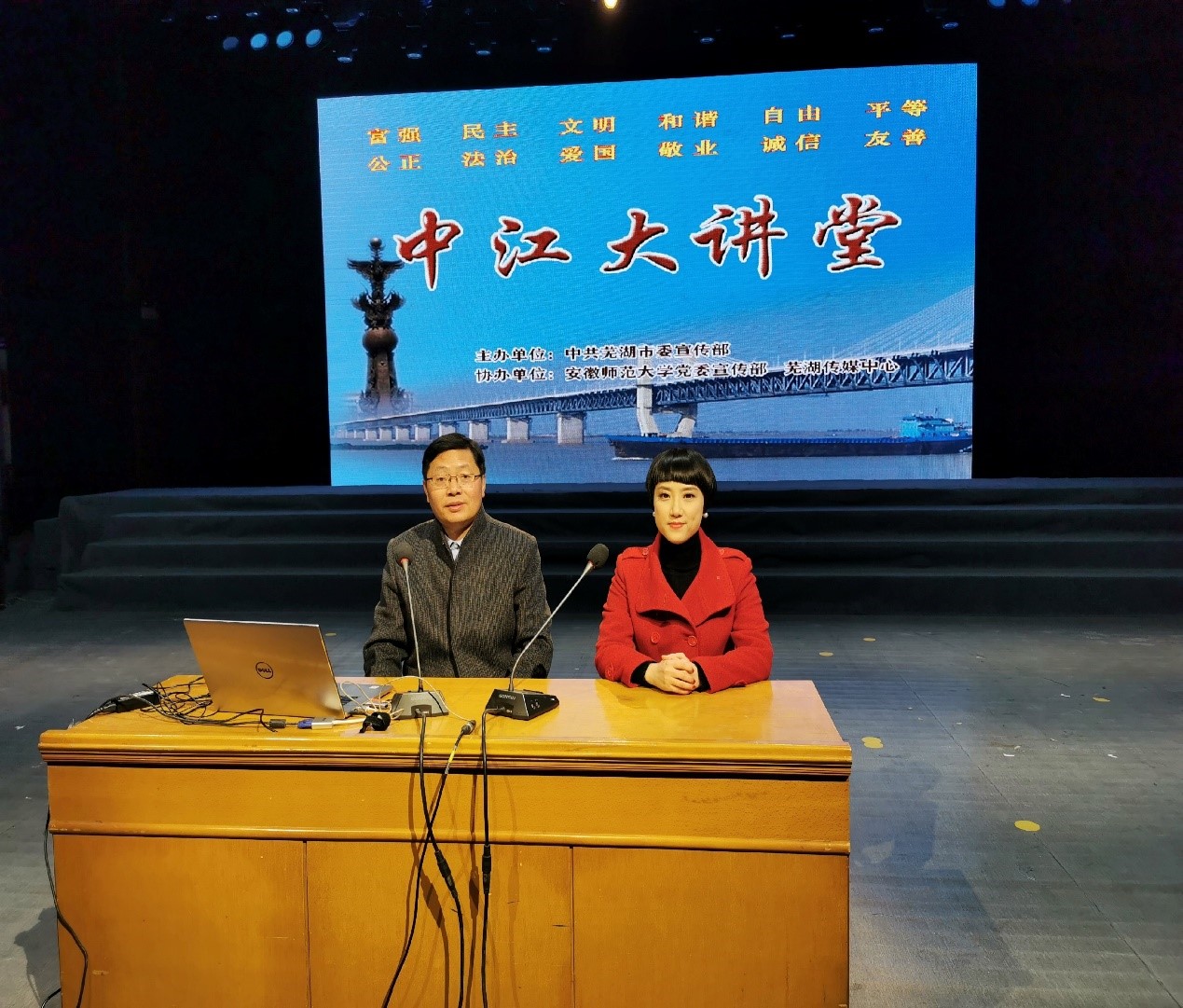 本网讯(565net必赢客户端)12月29日下午,我校565net必赢客户端教授、博士生导师杨效忠,应邀参加由芜湖市委宣传部主办、安徽师范大学党委宣传部和芜湖传媒中心协办的“中江大讲堂”在芜湖市百花剧场开讲,讲座主题为“芜湖古城的昨天、今天和明天”。当天,芜湖新闻网和今日芜湖APP均进行了全程视频直播,现场直播参与人数超过1.6万人。