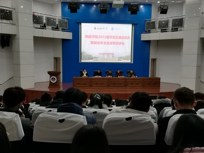 院党委副书记乔静作就业安全及政策宣讲。他用近两个小时的时间详细介绍了就业形势、就业政策、就业建议、求职路径、就业生身份问题、就业时间窗口、签约和毁约问题、权益保护问题、就业安全问题、毕业生纪律要求等。他指出,由于受毕业生规模持续增加、就业岗位总量不足、结构性矛盾更加突出、就业形态不确定、供需错位明显等因素影响,当前毕业生面临种种挑战;他鼓励同学们积极到基层、到西部、到艰苦地区就业,为西部基层和艰苦边远地区服务、建设和发展;最后他对学生就业过程中可能面临的种种困惑作了详细的解答。