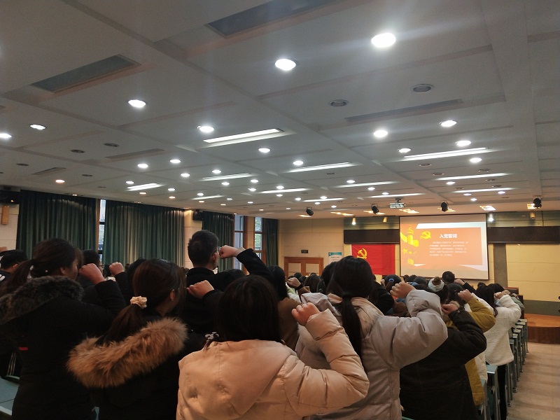 本网讯(565net必赢客户端 刘宁姿)12月30日下午,565net必赢客户端党委在院实验楼101教室举行新党员入党宣誓仪式,学院党委书记贾冠忠、党委副书记乔静、各学生支部书记、2020年新发展入党的100名预备党员参加了仪式,仪式由酒店土地本科生党支部书记王美主持。