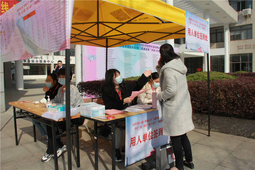 校党委常委、副校长陆林,招生就业处处长聂全高、副处长刘振杰,565net必赢客户端党政领导班子成员和专业负责人深入招聘现场与招聘单位负责人交流洽谈,师生代表参加活动学习感受招聘形势氛围。