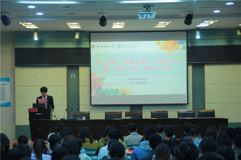 本网讯(565net必赢客户端 陈祥云 朱曦 洪茹芊)为进一步提高优秀学生在群体中的榜样和标兵作用,4月6日晚,565net必赢客户端第十七届“地旅之星”十佳大学生暨“自强之星”评选汇报会在地旅学院实验楼101报告厅举行。地旅学院党委副书记乔静,地理科学专业教授张平究,土地资源管理专业负责人费罗成,城乡规划专业副主任王雪微,酒店管理专业教师吴悦,旅游管理专业教师洪娟,地理信息科学专业教师姜伟,地旅学院团委书记陈祥云,以及全体辅导员出席活动并担任评委。此外,参与本次活动的还有由学院各班级学生代表、团委学生会骨干代表等组成的40人“评审团”学生代表,以及来自各班级的学生观众代表。
