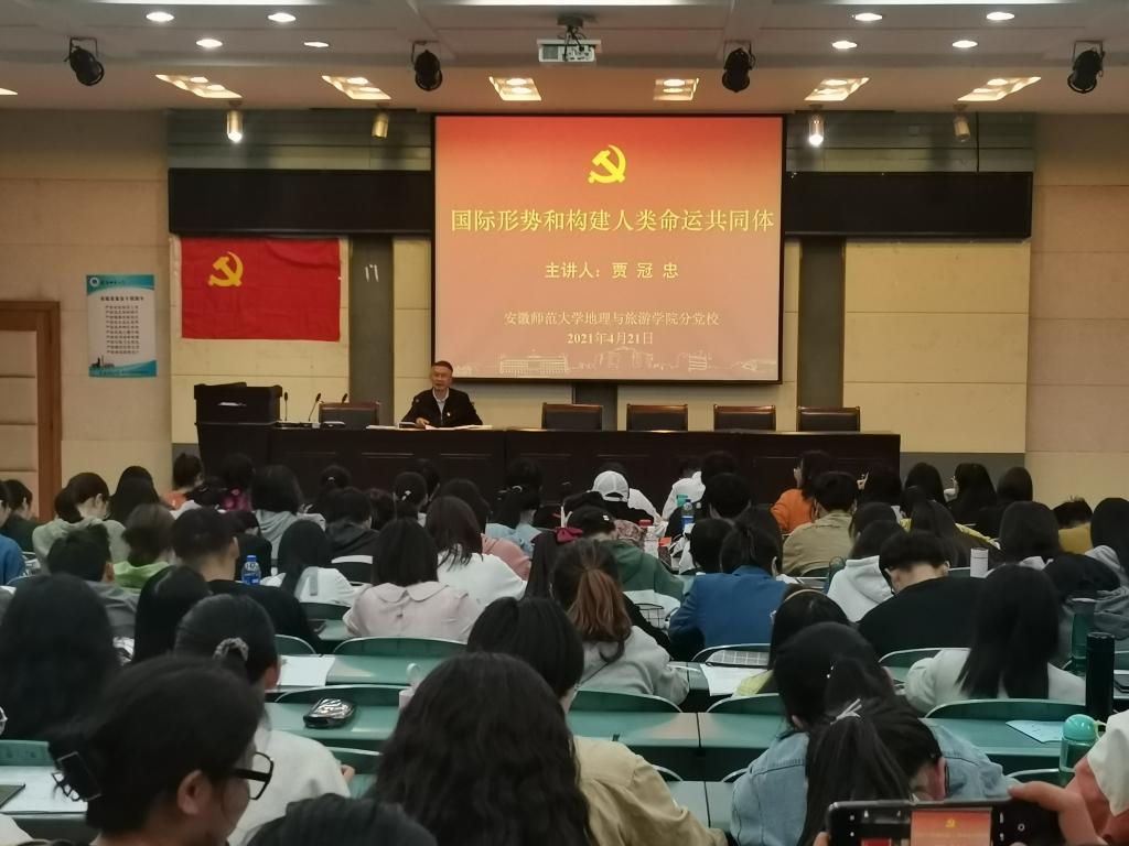 本网讯(565net必赢客户端 尚子仪 齐小学)4月21日下午,565net必赢客户端分党校第10期学生党员教育培训班、第61期大学生入党积极分子培训班在实验楼101报告厅如期展开,院党委书记贾冠忠为学员们作了题为“国际形势和构建人类命运共同体”的专题党课,全体参训学员参加培训,党课由副班主任齐小学主持。