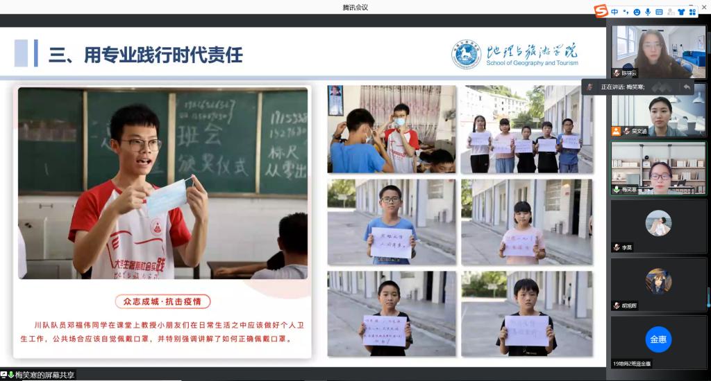 2019级土地资源管理专业梅笑寒同学是本次微团课第三讲的主讲人,她从“用榜样凝聚青春力量”、“用行动抒写战疫青春”、“用专业践行时代责任”三个方面为同学们讲述了抗疫一线的青年榜样事迹,并呼吁同学们在当下做到“五积极 五严格”,做好防护并保护好亲友家人,并在保证安全的前提下投身疫情防控,积极参加志愿服务活动,为社会服务、为人民服务,努力当好疫情群防群控的“战斗员”“宣传员”“保障员”,携手构筑战疫共同体。