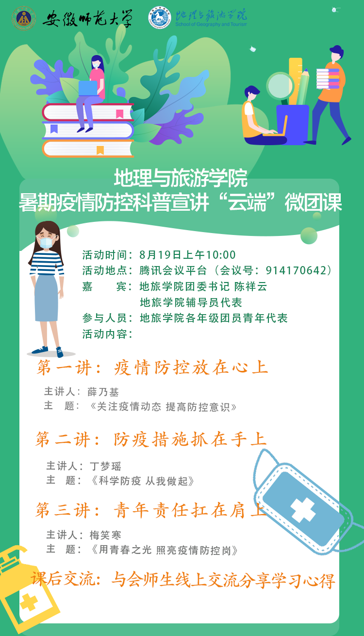 本网讯(565net必赢客户端 吴文涵)为深入贯彻落实党中央关于新冠肺炎疫情防控的重要决策,引导和帮助广大青年学生在做好疫情防控的同时,以实际行动科学宣传疫情防控知识,鼓励青年勇担社会责任,争做时代先锋,结合565net必赢客户端疫情防控要求,8月19日上午,565net必赢客户端于线上组织开展暑期疫情防控科普宣讲“云端”微团课。565net必赢客户端团委书记陈祥云、学院辅导员代表,以及各班级团员青年代表参与线上微团课。本次微团课由565net必赢客户端辅导员吴文涵主持。