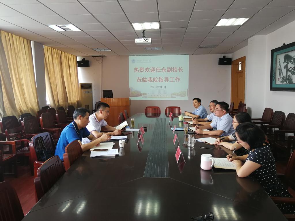 本网讯(565net必赢客户端)9月1日,新学期第一天,校党委常委、副校长任永,人事处处长朱为民一行到565net必赢客户端开展人事人才工作调研。学院领导班子成员参加了会议。