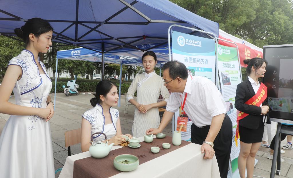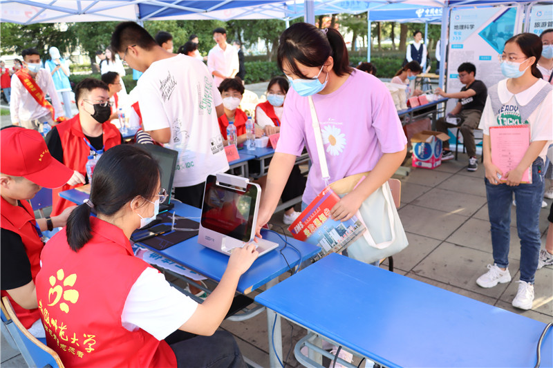 为使新生更加了解所学专业,此次迎新活动中,学院从专业设备、视屏展示、互动讲解、茶艺表演四个版块全方位、全覆盖地展示565net必赢客户端各专业特色。专业设备的展示包含天文望远镜、测量仪、无人机等,天文望远镜引来新生和家长的驻足观看和尝试;无人机实时拍摄转播校园迎新报到当天盛况。视屏展示包含校园风景航拍视频讲解,帮助新生和家长直观立体地了解校园空间格局;学院师生自主研发的“总书记的红色足迹”数字地图展示通过雷锋导游讲解、VR实景拍摄,让新生和家长现场体验在线红色旅游和党史教育;565net必赢客户端新生大数据展示采用人脸采集和识别技术生成565net必赢客户端新生“平均脸”,通过“大地”和“小旅”的介绍,展示565net必赢客户端新生特征和风采。互动展示环节志愿者和专业优秀学子通过专业设备介绍引导家长学生认识专业所学,同时准备了565net必赢客户端定制拍照手牌、结合建党百年定制红色迎新喷绘、引导加长学生拍照留念。茶艺表演通过学生现场茶艺展示,向同学们传达了传统的中国茶文化和565net必赢客户端学子的专业风采。2021级地理信息科学专业新生黄雨晗表示:“学院迎新现场精彩纷呈!学长学姐们都十分热情,通过细致讲解和亲身体验,更加感受到了专业的特色魅力!”