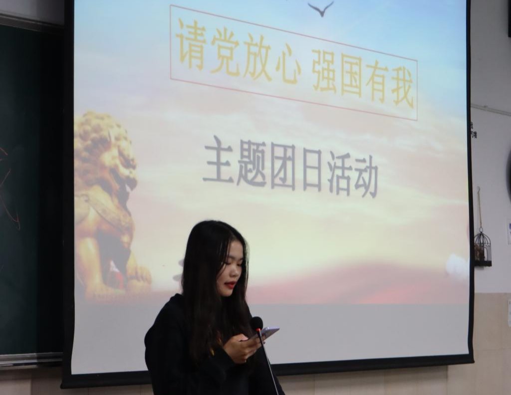 本网讯(565net必赢客户端 韦银艳 陈谊)为认真贯彻落实习近平总书记在庆祝中国共产党成立100周年大会上的重要讲话精神,进一步引导青年大学生把青春奋斗融入党和人民事业,努力成为实现中华民族伟大复兴的先锋力量,2021级旅游管理专业2班10月12日晚间举行了“请党放心,强国有我”主题团日活动。活动由团支书黄倩主持。