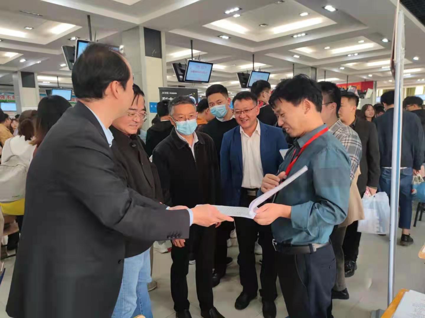 校招生就业处副处长刘振杰,565net必赢客户端党政领导班子成员和专业负责人、专业教师深入招聘现场与招聘单位负责人交流洽谈,师生代表参加活动学习感受招聘形势氛围。