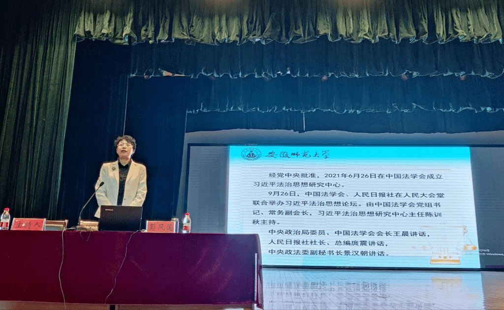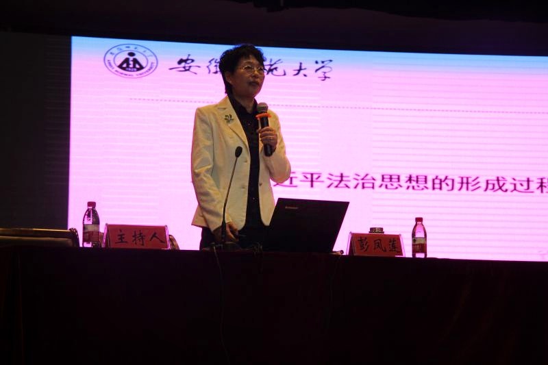 彭凤莲以“习近平法治思想的形成及其核心要义”为主题,以“习近平法治思想的形成背景”、“习近平法治思想的形成过程”、“习近平法治思想的核心要义”三个方面阐述了中国法治思想的形成以及法治制度的建立、走出中国式的依法治国的道路以及实现中华民族伟大复兴进入不可逆转的历史进程。彭凤莲指出,从“起草宪法”到“建设中国特色社会主义法治体系、建设社会主义法治国家”六十多年的法治建设,最终形成了完备的法律规范体系、高效的法治实施体系、严密的法治监督体系、有力的法治保障体系、完善的党内法规体系。